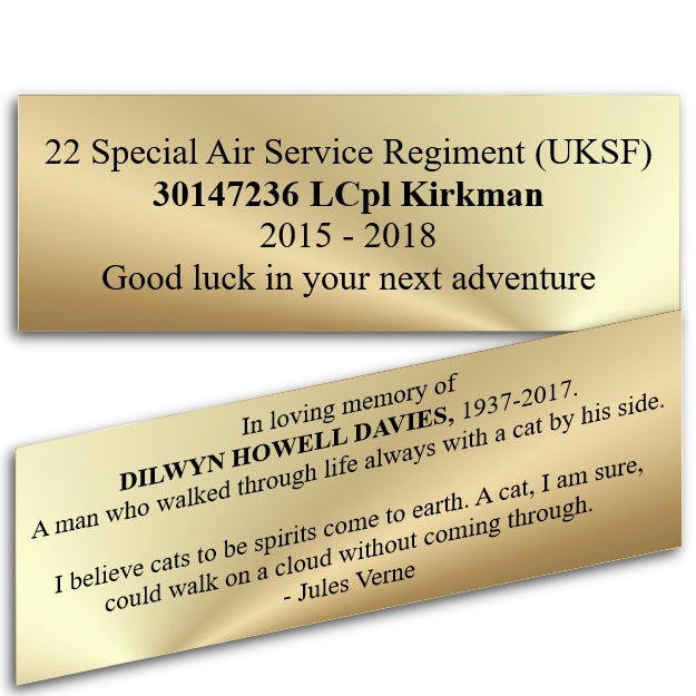 Beautiful Lacquered Brass Plaques that will last for many years These plaques are the perfect addition to any home or office Each plaque is handcrafted from start to finish, and features a durable lacquer coating that will protect it from tarnishing over time. These plaques make beautiful accents to any décor, and are sure to last for many years to come. and will add a touch of elegance to any space. These plaques require no maintenance as they are lacquered so they will never tarnish. We can also engrave logos and artwork onto your plaque at no extra cost. You can even choose your own fonts. To order your own lacquered brass plaque, simply visit our website or contact us today. We look forward to helping you create a beautiful, timeless piece that you can enjoy for many years to come.